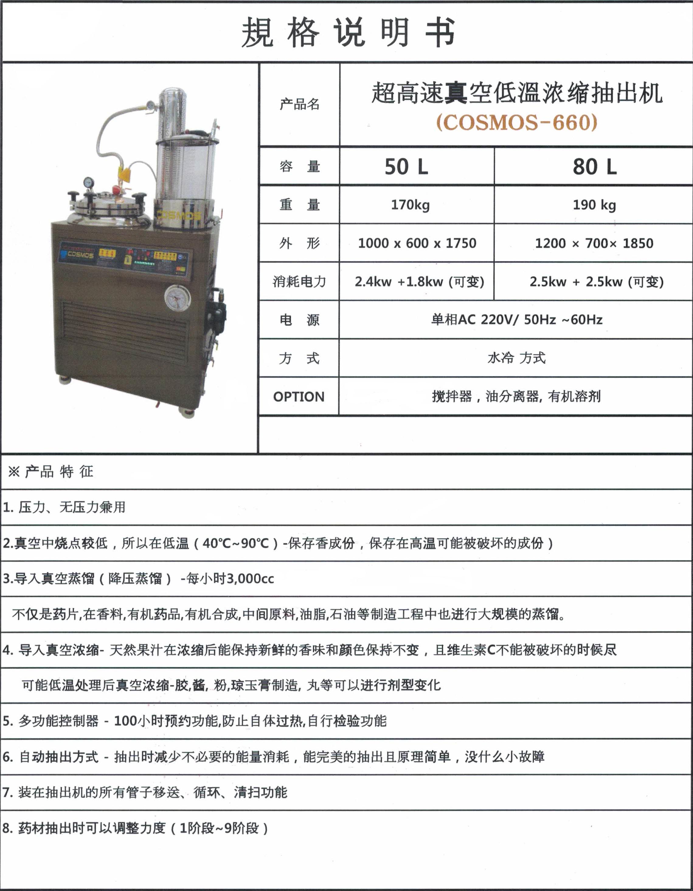 超高速 真空 低温 浓缩 抽出机