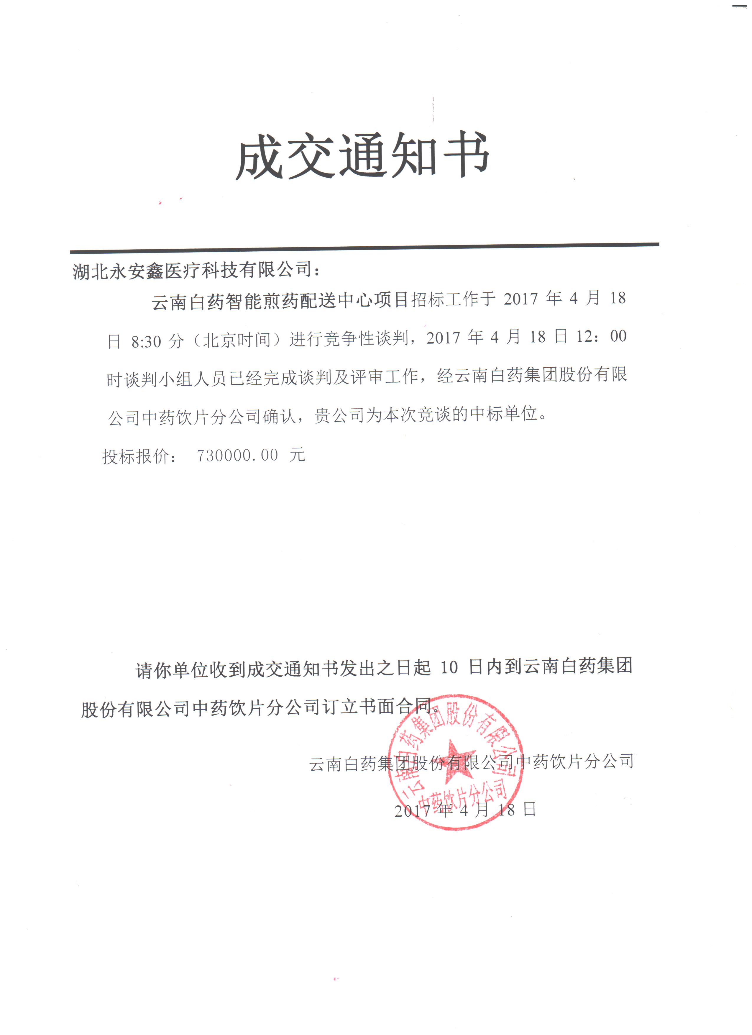 热烈祝贺我公司顺利中标云南白药集团智能化煎药中心项目