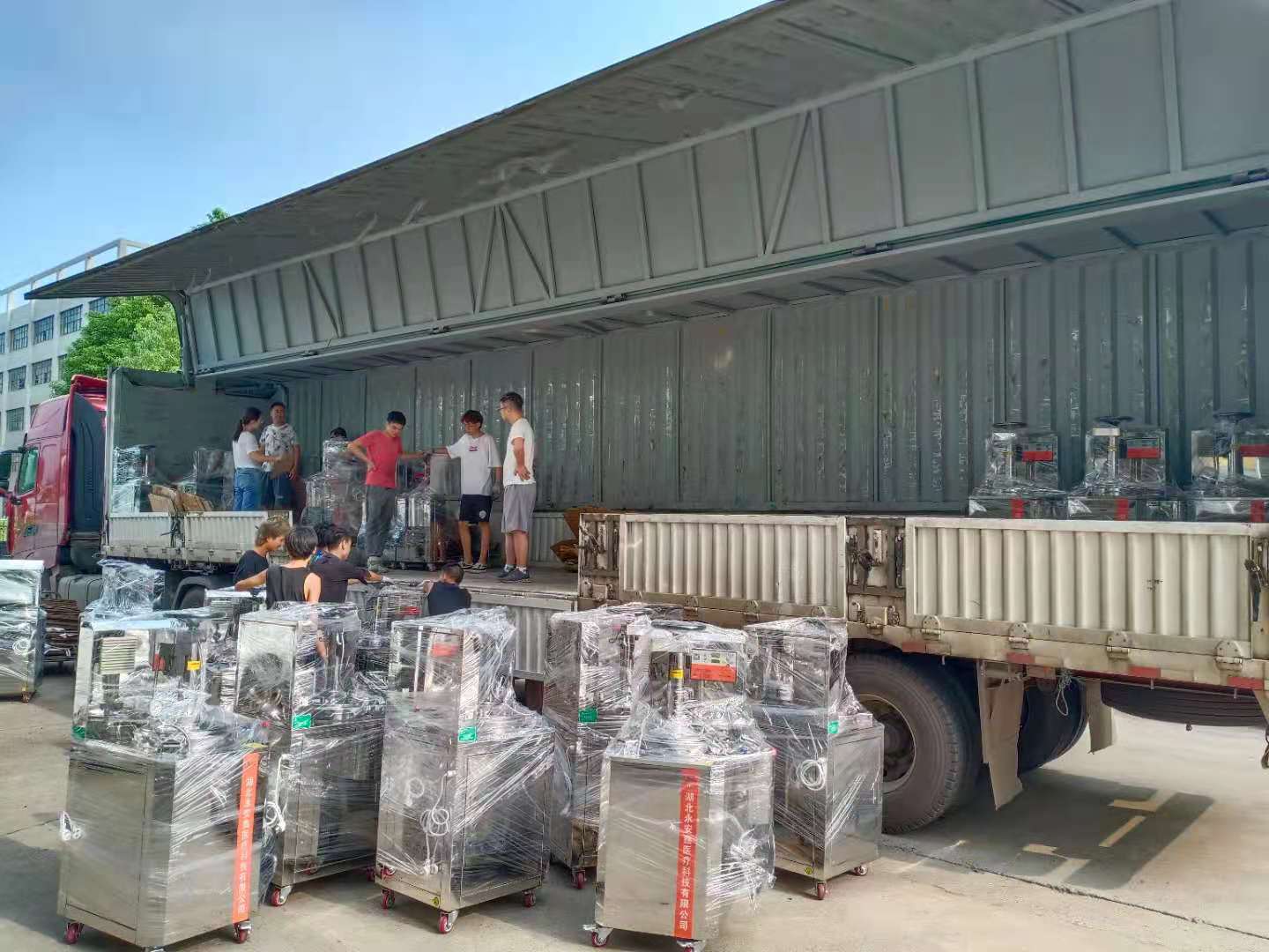 多功能上挤压联网版煎药机、包装机发货,一个月内全体员工战高温,加班加点、任劳任怨,终于提前交货!