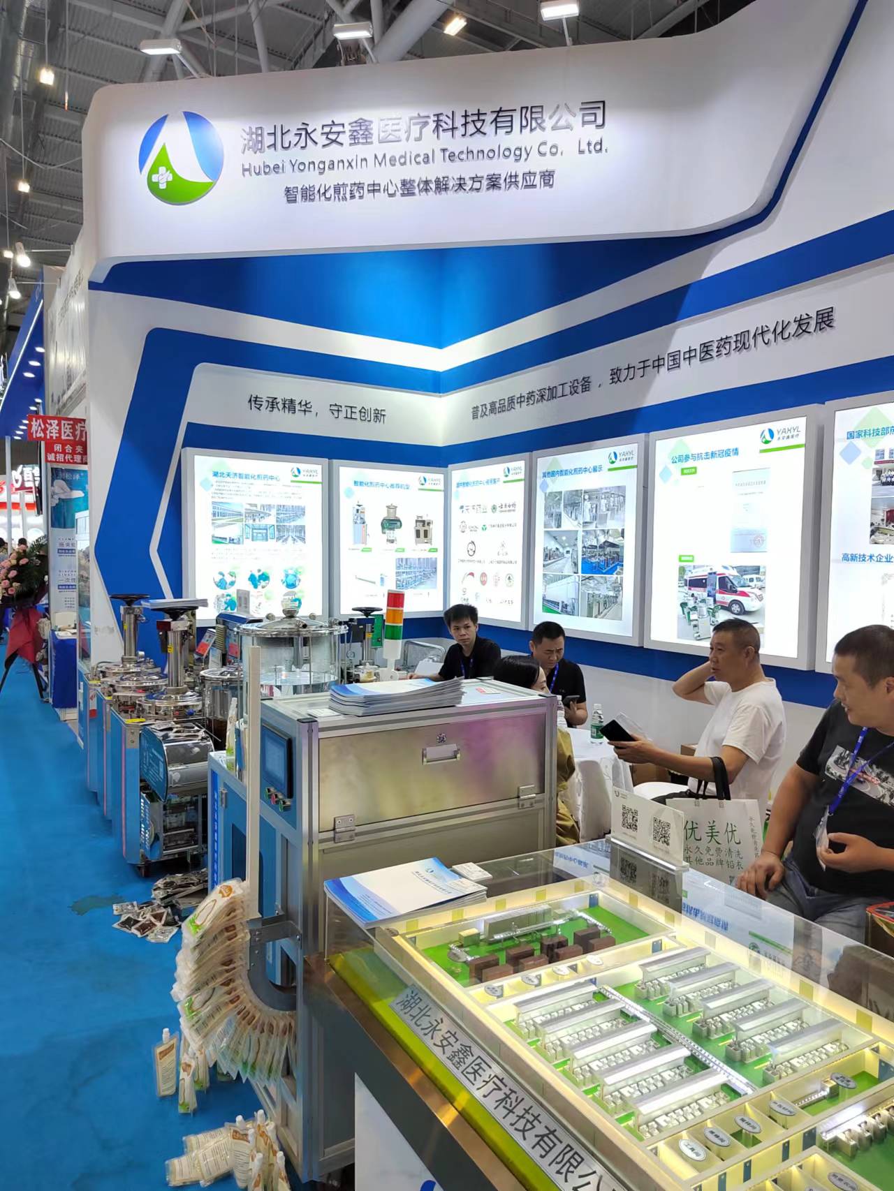 本次展会上,永安鑫医疗不仅带来了各种中药深加工设备,而且更是为观众精心打造了智能化煎药中心3D模型,全方位深度分享智能化煎药中心解决方案。 3D模型包括自动化调剂、自动化输送线、自动化煎药、自动化包装等区域,使参观客户身临其境,得到了众多客户的支持和肯定。
